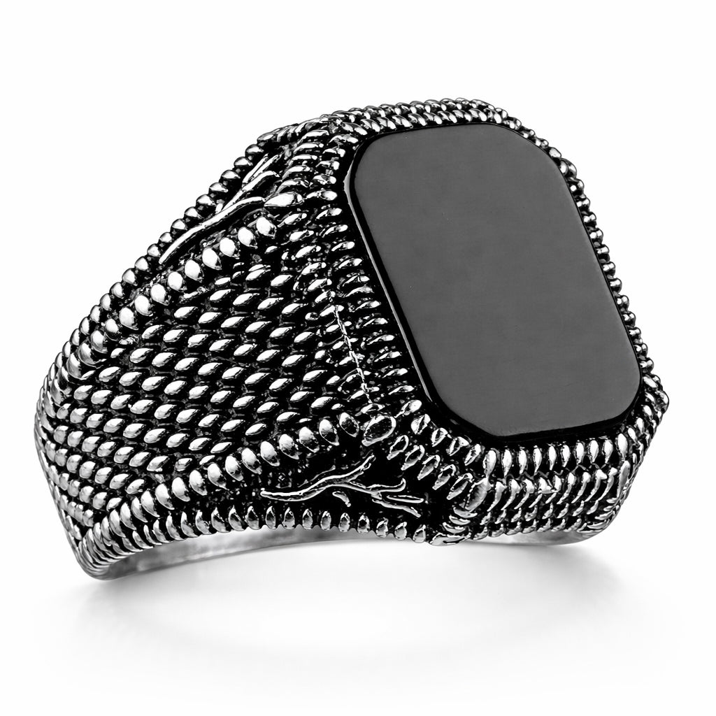 Ring i zink alloy, sten i svart onyx.