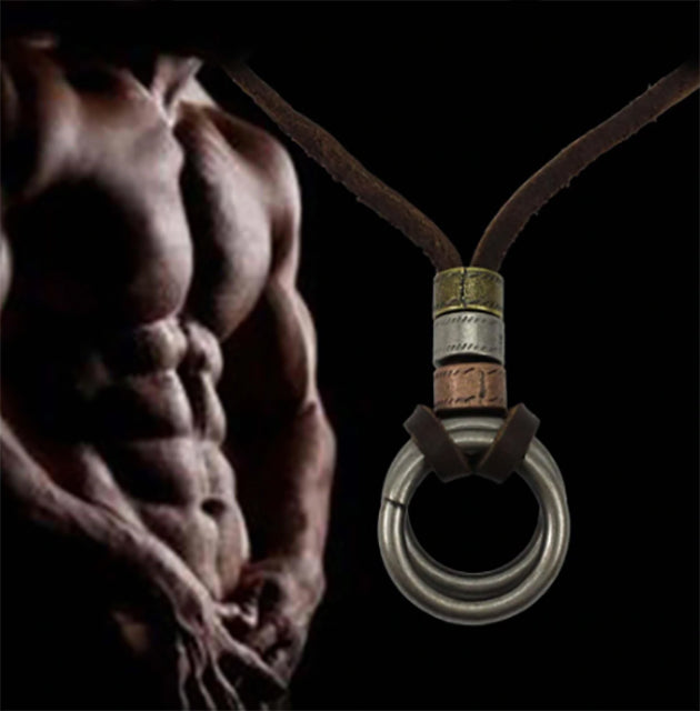 Læderhalskæde med 2 ringe i vintage look.