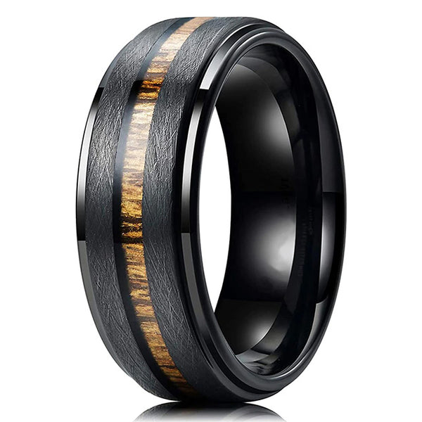 Mattsvart ring i rostfritt stål med inläggning av Hawaiian Koa Wood i ett infasat spår.Ca 8 mm bred, finns i 2 storlekar.