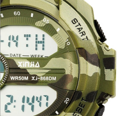 The watch has a number of functions, and both the bracelet and case go in black and green details.
