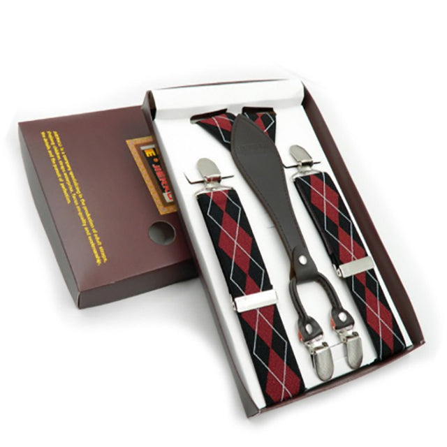 Checker mönstrade hängslen, metallspännen som passar de flesta byxor.